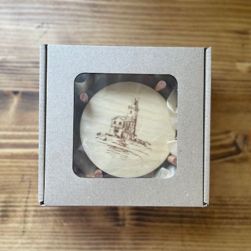 Zestaw drewnianych podkładek pod kubki z grawerem