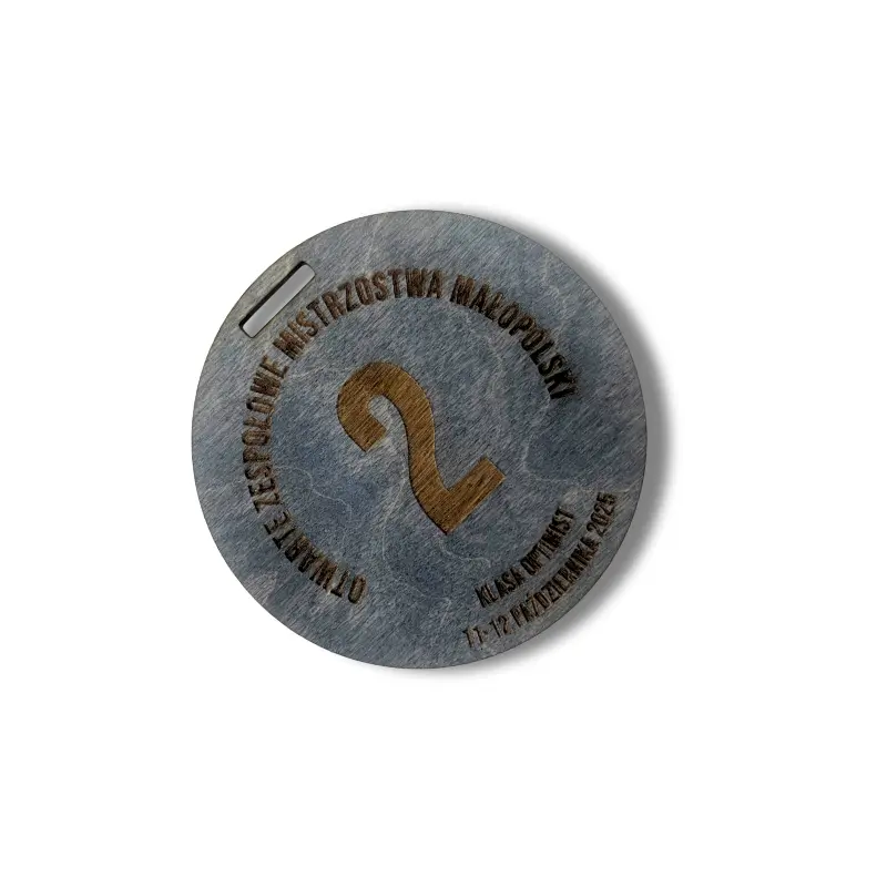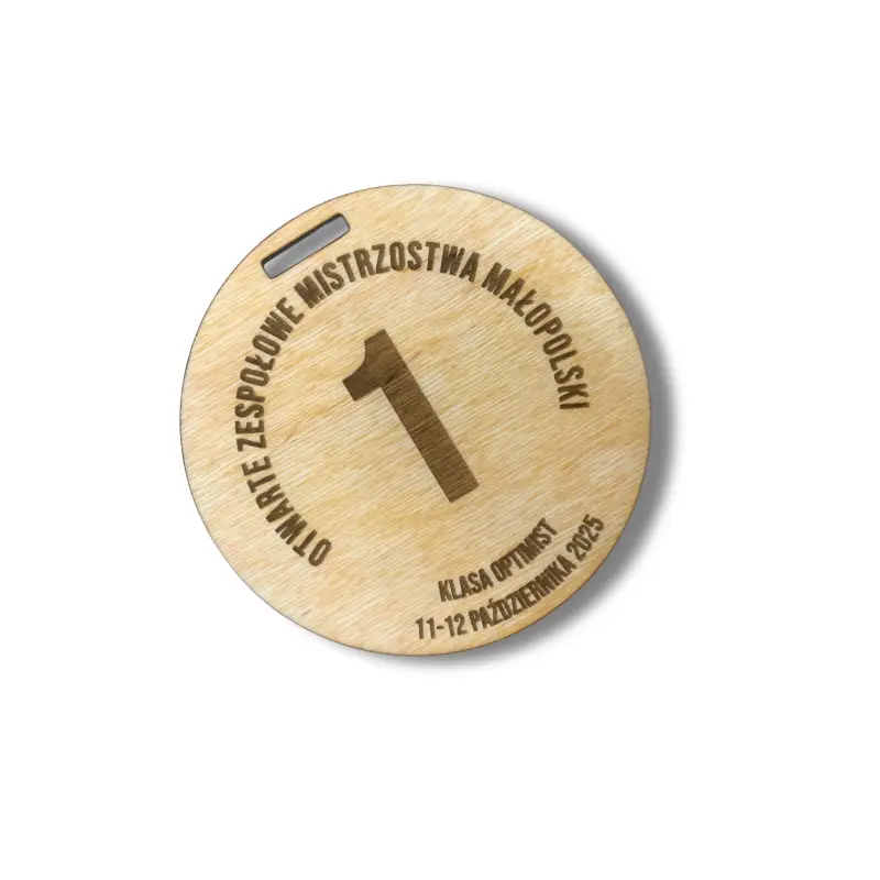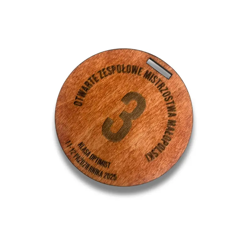 Okrągłe medale wykonane ze sklejki 3 mm, z wycięciem na taśmę, doskonale sprawdza się na każdą imprezę sportową i nie tylko.